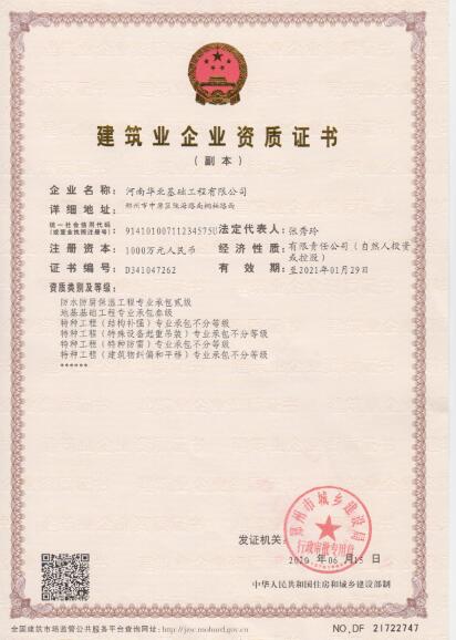 公司成立20余年來(lái),隊(duì)伍規(guī)模逐步擴(kuò)大,經(jīng)營(yíng)范圍不斷拓展,服務(wù)能力顯著提高,服務(wù)手段快速更新?,F(xiàn)地基基礎(chǔ)施工、非開(kāi)挖產(chǎn)品研發(fā)及施工、油氣工程技術(shù)服務(wù)已成為公司三大支柱產(chǎn)業(yè)。多年來(lái),與中鐵大橋局、中鐵五局、中鐵七局、中鐵十局、中鐵十五局、中鐵十六局、中鐵二十局、中交一公司、中交四航局、北新路橋、河南路橋等數(shù)十家企業(yè)建立了長(zhǎng)期合作關(guān)系。曾經(jīng)獲得河南省建筑業(yè)先進(jìn)企業(yè)、河南省建筑安全先進(jìn)企業(yè)、河南省建筑工程質(zhì)量先進(jìn)企業(yè)、河南省高新技術(shù)企業(yè)等榮譽(yù)稱(chēng)號(hào)。