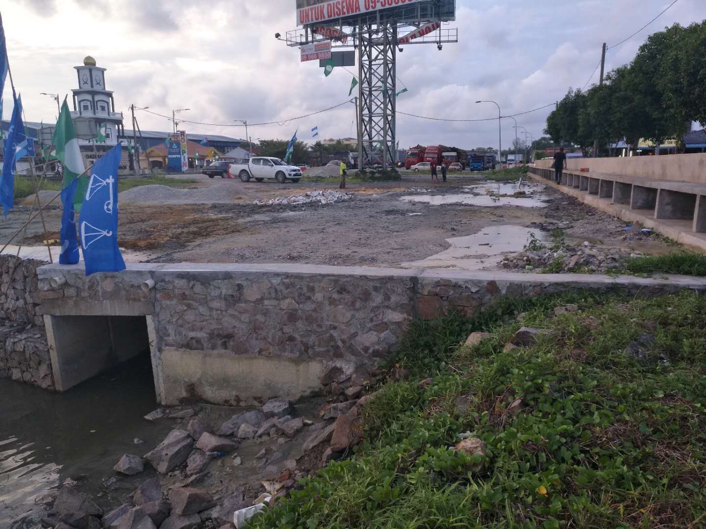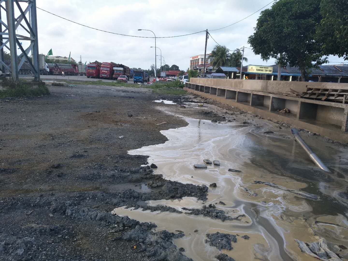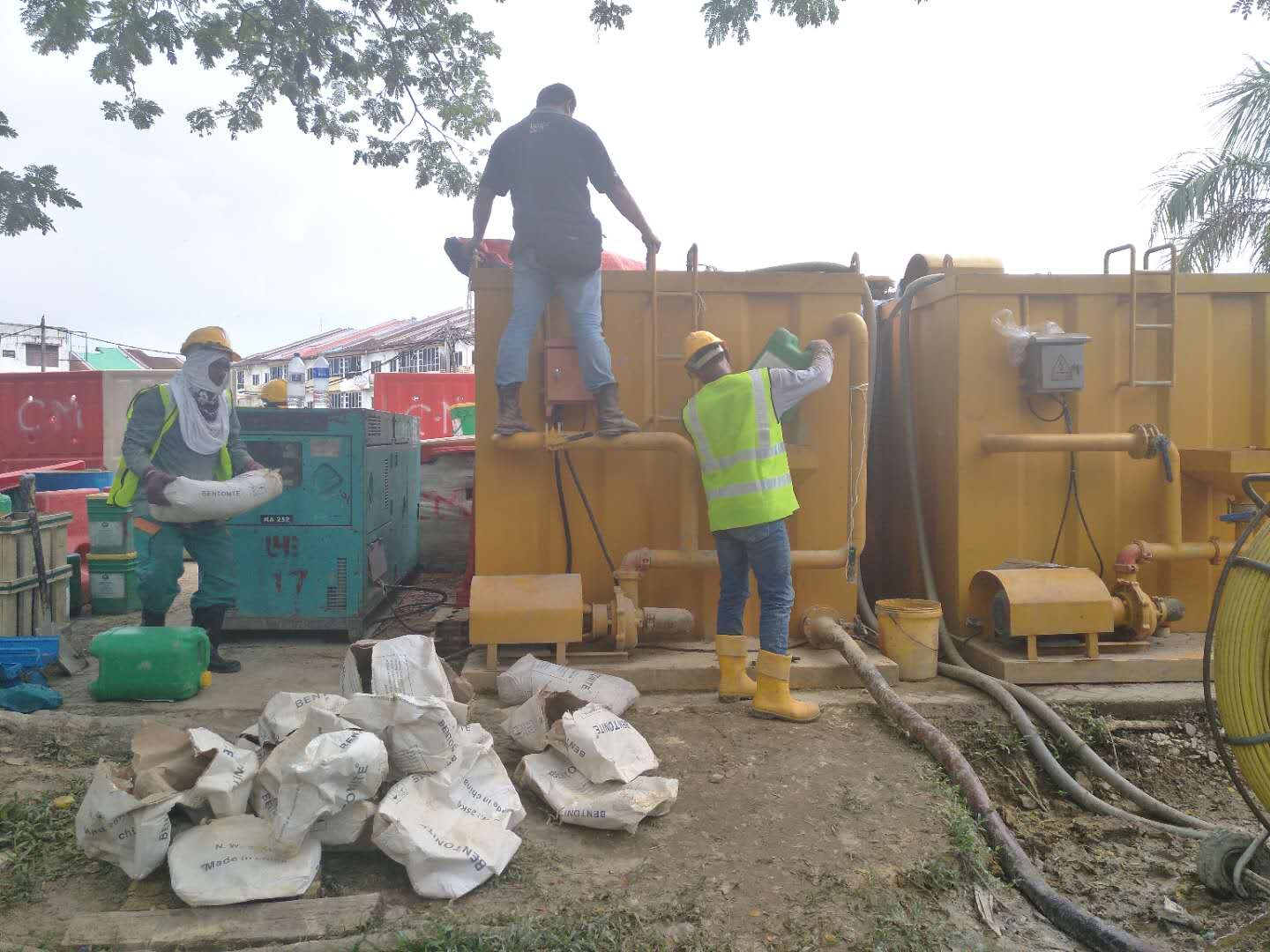 這次穿越鉆機(jī)受限制,只能固定在一個(gè)地方,旁邊是給船加油的油廠,穿越差不多平行橋走,距離橋10米距離,處鉆口也很受限制,出鉆口有停車場,有人工管網(wǎng)。